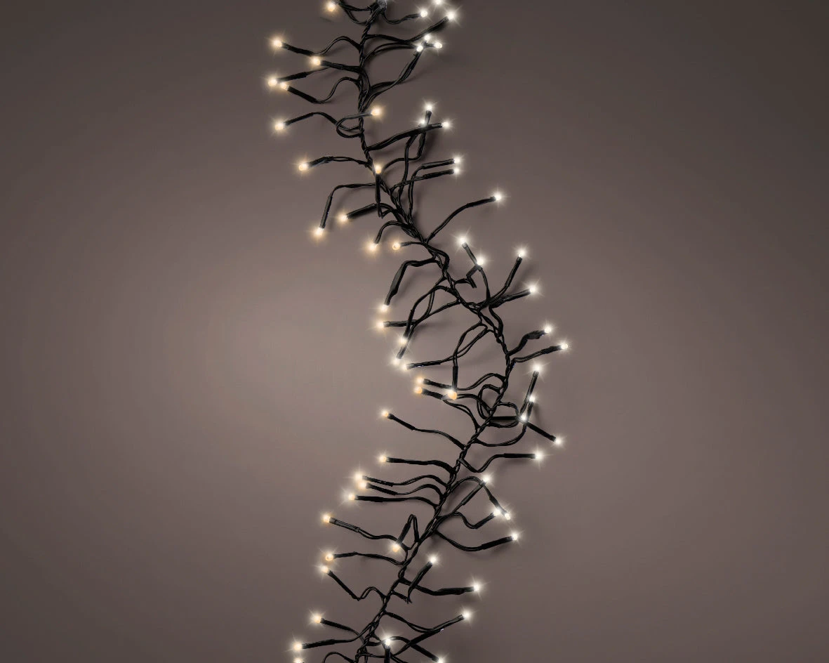 ring your holiday décor to life with this 10-foot strand of 448 warm white LED cluster lights on a classic black wire. Designed for brilliance and efficiency, these lights offer multiple twinkle functions that add depth and sparkle to any setting. With long-lasting LEDs and low power consumption, they deliver reliable glow season after season—making them a smart and festive choice for years to come. Non-Connectable