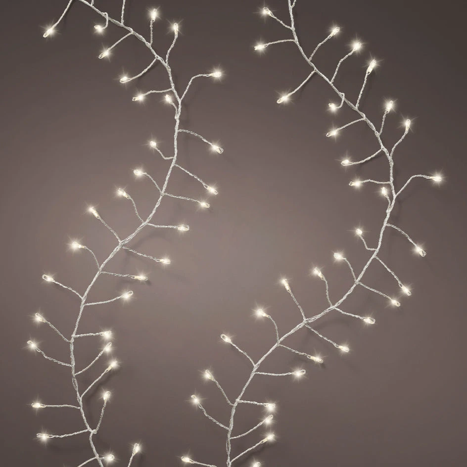 Glow with warmth and elegance using this 39-foot strand of 960 warm white micro LED compact lights. Delicately arranged on a refined silver wire, these lights feature multiple twinkle effects that gently dance with light. Ideal for both indoor and outdoor settings, the energy-efficient design delivers a soft, enchanting ambiance perfect for seasonal displays or everyday décor. Non-Connectable
