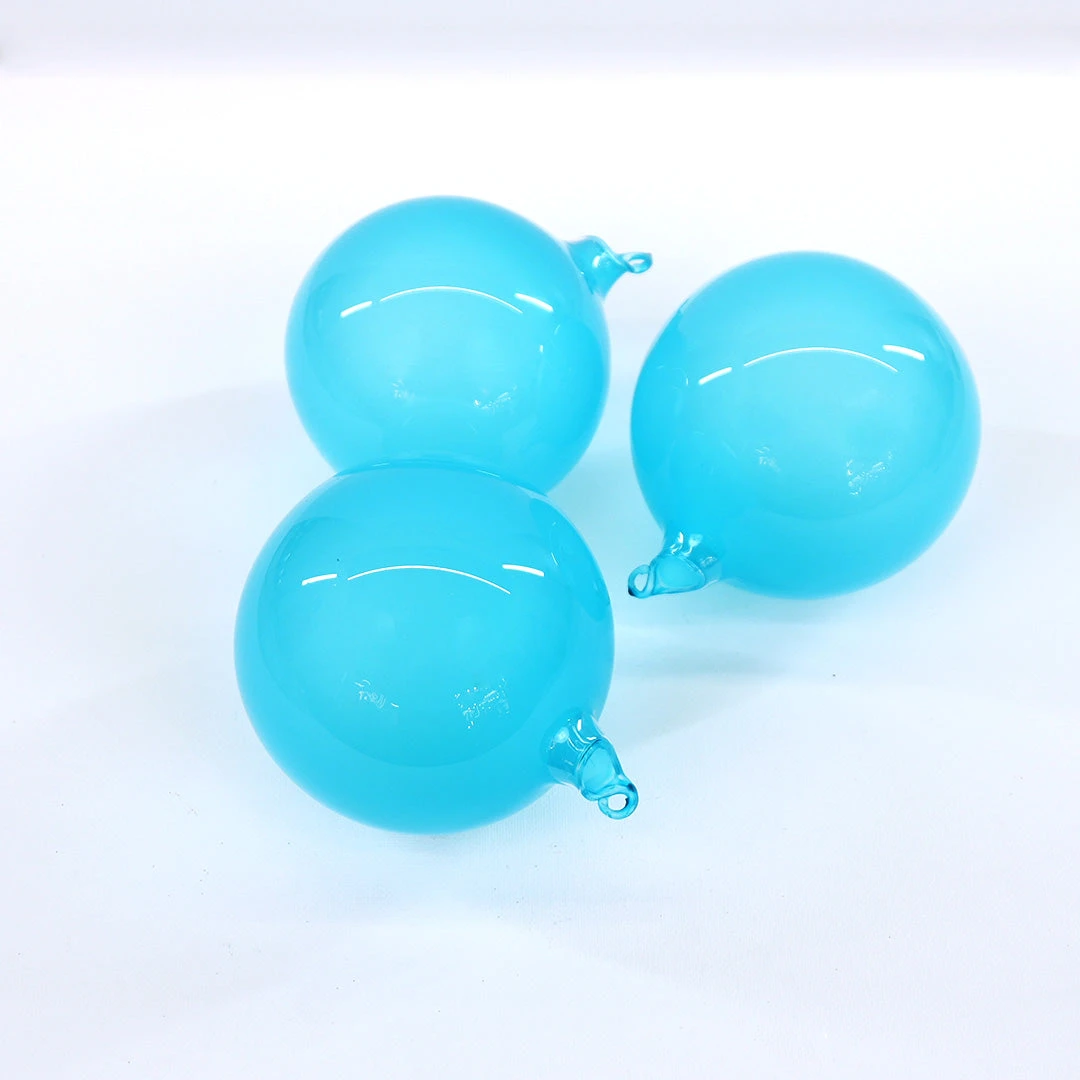 4″ Turquoise Bubblegum Glass Ornament Box Of 3
