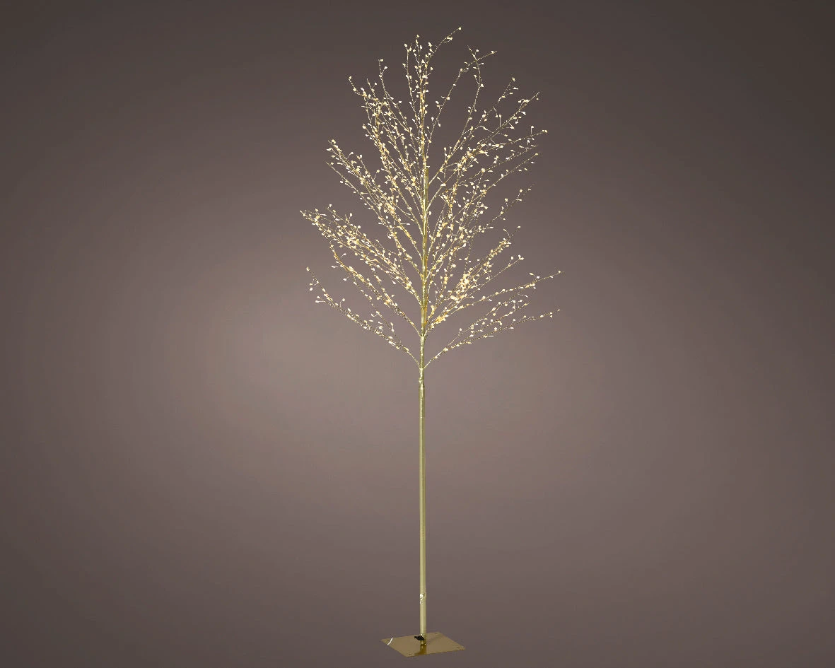A radiant vision of holiday elegance, this micro tree shimmers with warm white LED lights that dance along its slender golden trunk and branches. Graceful in form and rich in glow, it brings a refined charm to any space. Designed with a built-in timer for effortless convenience and suitable for outdoor display, it offers both enchanting beauty and practical ease for a truly magical seasonal touch.