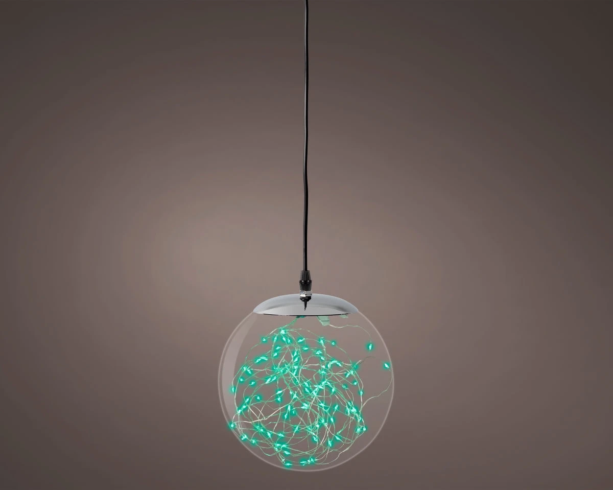 Fresh and striking, this clear shatterproof hanging ball glows with vivid green micro LED lights that create a bold, modern look. The lights are delicately arranged on transparent wire, giving the illusion of floating illumination inside the sphere. Suspended from a sleek black cable, it’s designed for both indoor and outdoor use—perfect for festive displays, nature-inspired themes, or adding a pop of vibrant color to your décor.