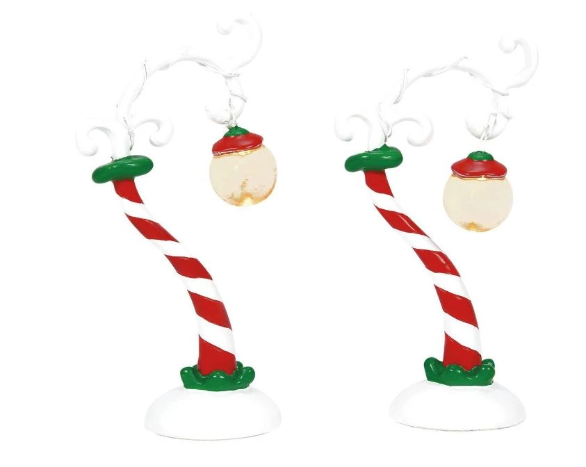 These wonky streetlights in vibrant red and white stripes cast a welcoming warm light across all of Who-Ville this wintery night!
