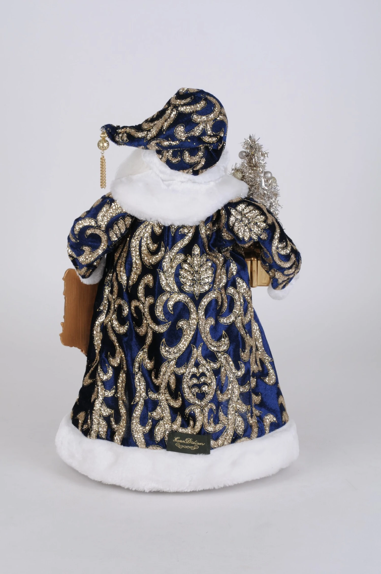 This battery operated Midnight Blue Santa is great as a center or accent piece to your Christmas decor. The quality is unmatched with this decorative piece’s hand-painted face, glass inset eyes, unique fabric, and detailed accessories. With this design’s luxurious touch and exquisite design, he’s sure to add character and style to any home. Lights are battery operated.