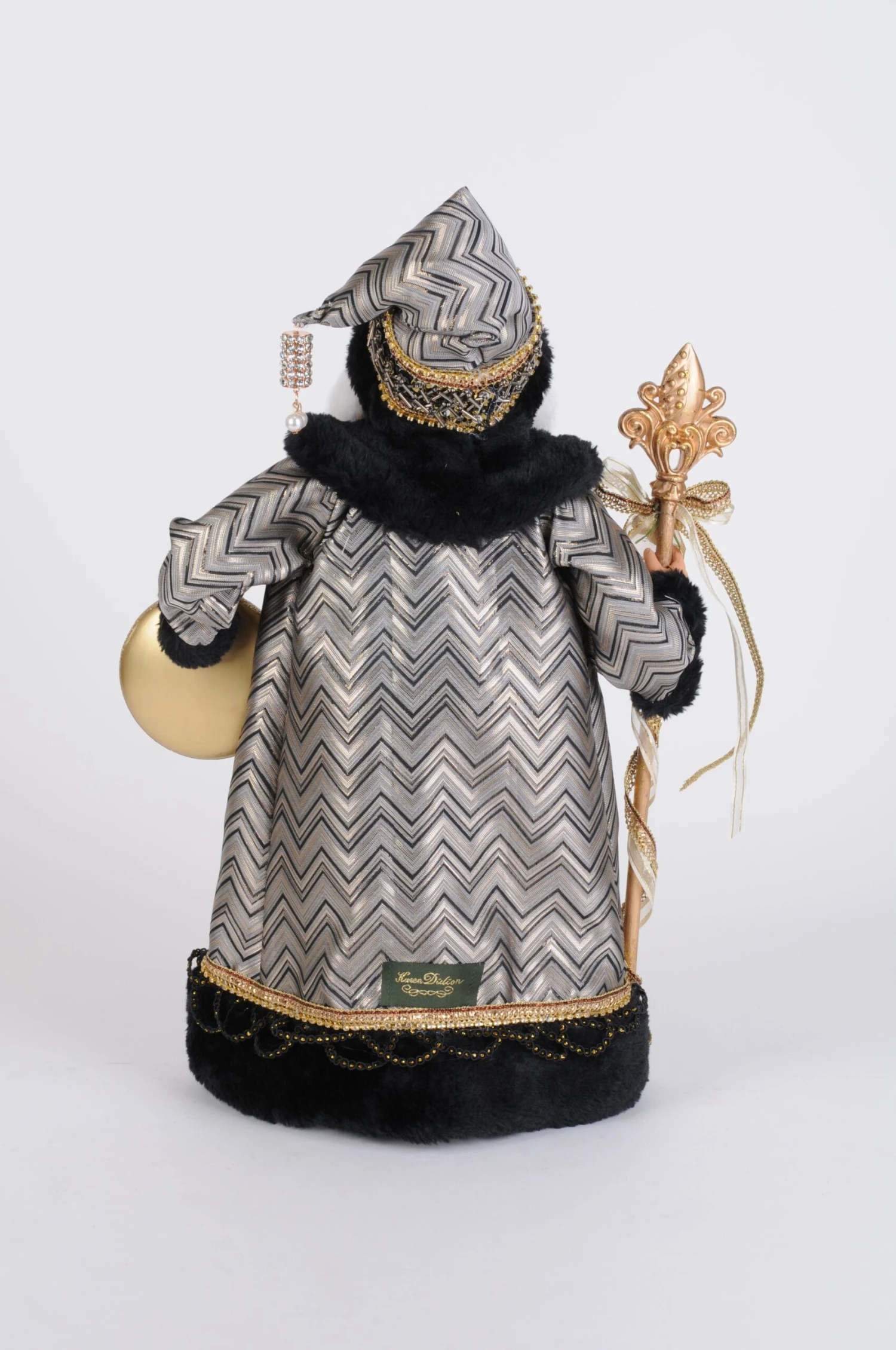 The Silver & Gold Noel Santa is great for any shelf, office, and countertop. The quality is unmatched with this decorative piece’s hand-painted face, inset eyes, unique fabric, and detailed accessories. With this design’s luxurious touch, silver, gold and black art deco theme; he’s sure to add some shimmer and shine to any home.