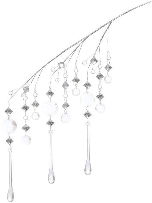 This enchanting Mark Roberts jewel hanging teardrop spray brings a touch of elegance and sparkle to any setting. A delicate silver branch stem extends into smaller offshoots, each adorned with shimmering silver diamond gems and clear round accents that catch the light beautifully. At the tip of each branch, a clear teardrop gem adds graceful movement and dimension, creating a truly mesmerizing and luxurious display.