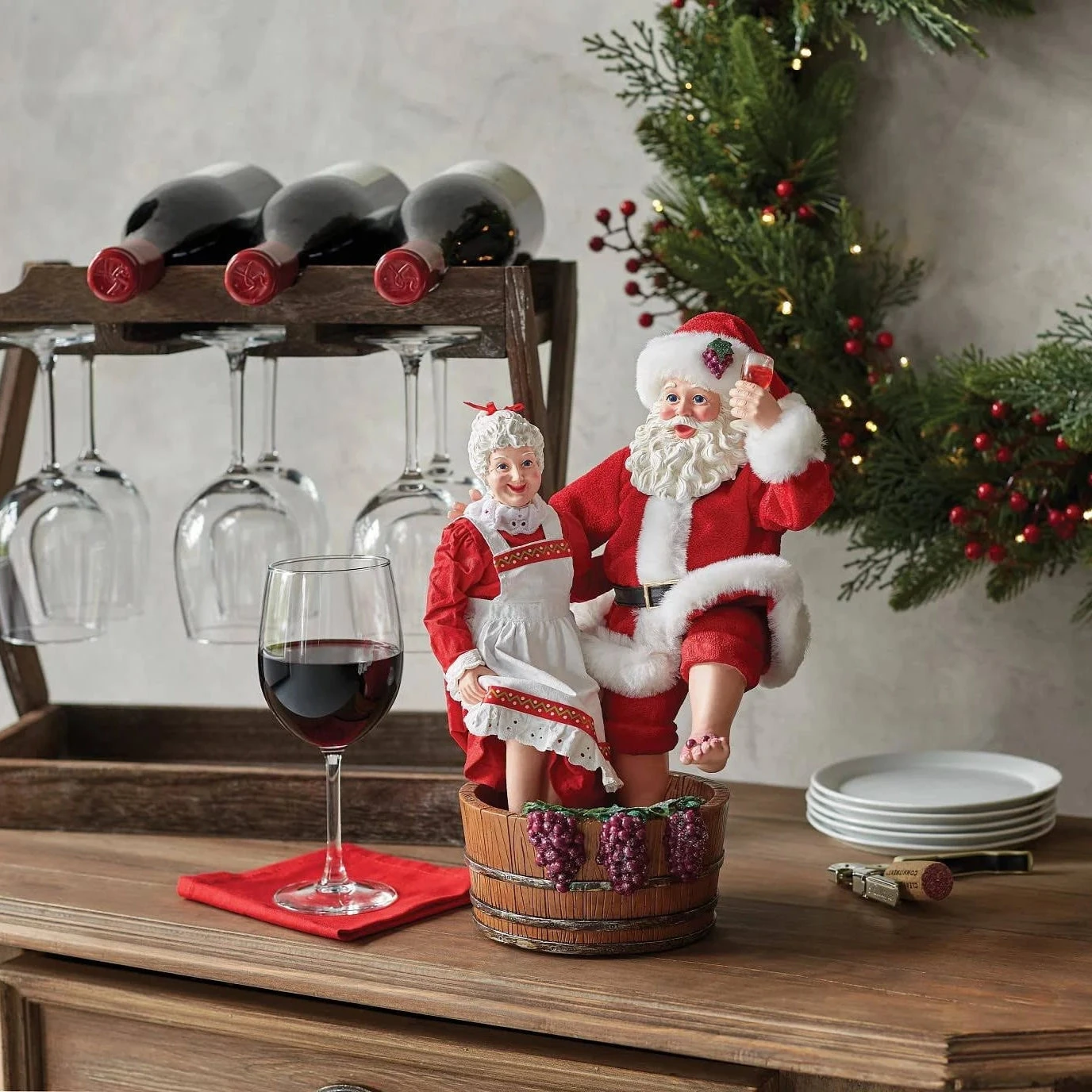 Santa & Mrs. Claus enjoy their time at the winery grape-treading. Wearing their traditional christmas clothing, they are enjoying each others company in the country.