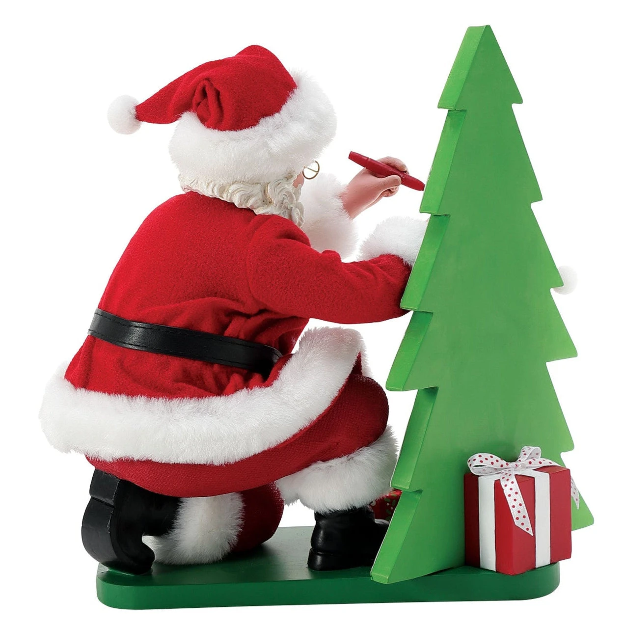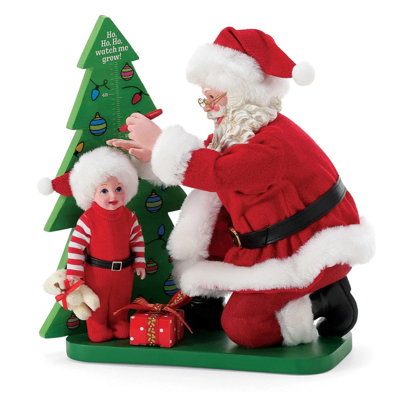 Santa takes a joyful pause from his holiday duties to measure a young child’s height in front of a festive Christmas tree height scale reading, “Ho, Ho, Ho, Watch Me Grow!” With a warm smile, he marks this special moment, celebrating not just growth in height but also in Christmas spirit. Crafted from signature stiffened Clothtique fabric with hand-painted details, this heartwarming piece is a wonderful keepsake for cherishing holiday memories!